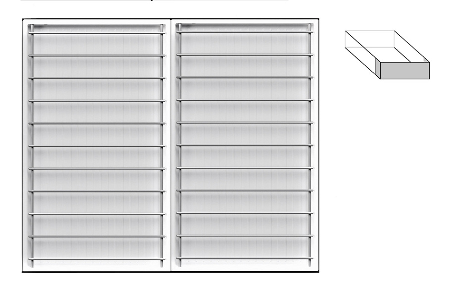 • 1 большой модуль для посуды + 1 большой модуль с решеткой + 1 малый модуль для посуды + модуль для столовых приборов
