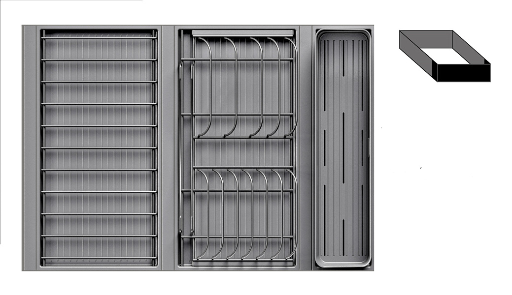 Модель — 1 большой модуль для посуды + 1 большой модуль с решеткой + модуль для столовых приборов