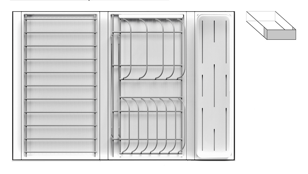 Модель — 1 большой модуль для посуды + 1 большой модуль с решеткой + модуль для столовых приборов