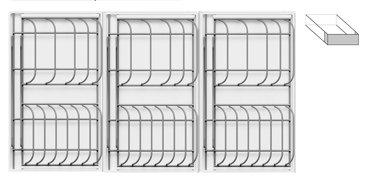3 модуля для посуды большие (каждый модуль 423 x 248 мм, состоит из 1 х держатель металлический, 1 х поддон пластиковый, 2 х защелка-ограничитель)