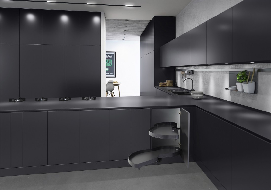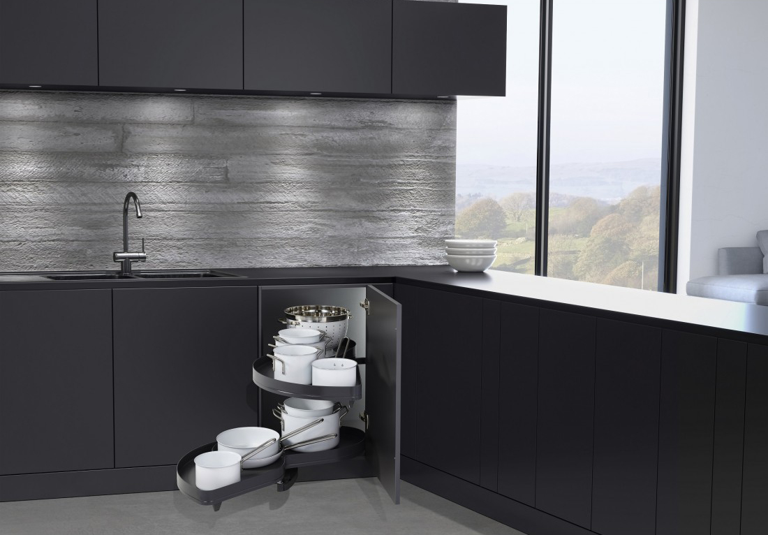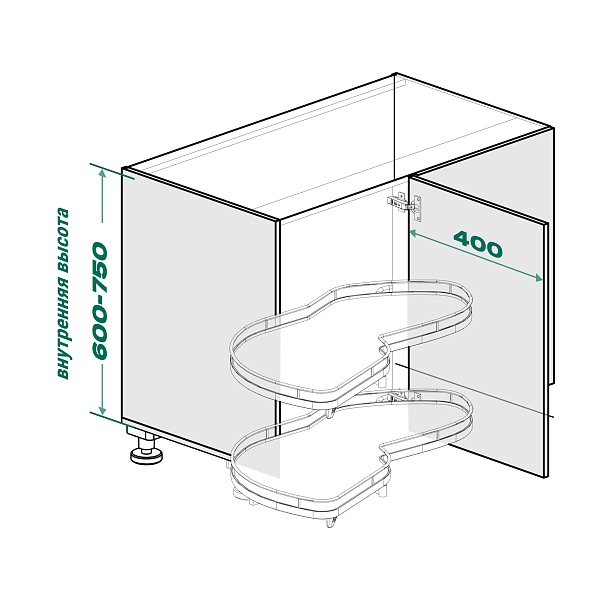 Комплект полок левый, Леманс 400 мм, Арена ПЬЮР, 2 полки + рычаги, цвет АНТРАЦИТ, цвет дна Антрацит, антислип (2603919846)