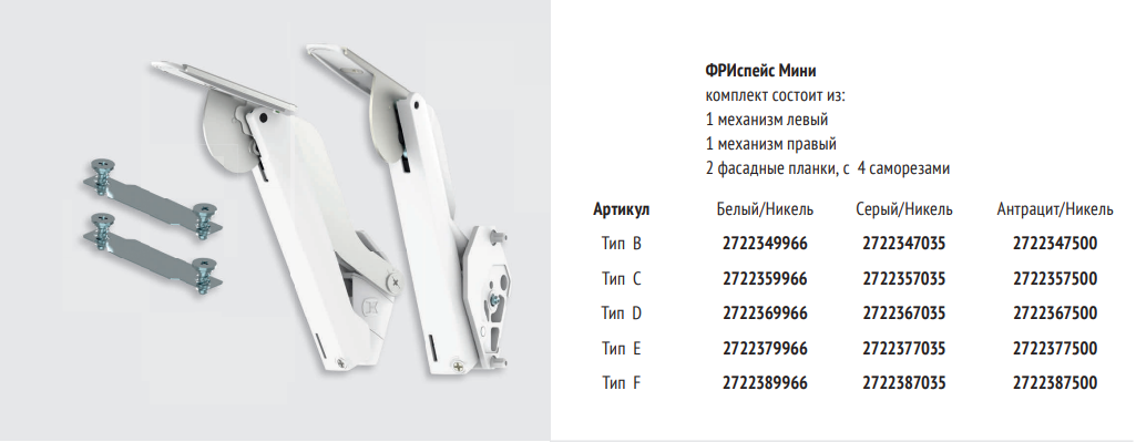 Подъемник ФриСпейс, тип F, Комплект из 2 шт (правый и левый) и 2 крепления к фасаду, цвет АНТРАЦИТ/никель (2722387500)