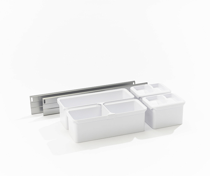 Набор емкостей №1 Юбокс, Диспенса / Диспенса Джуниор 300 мм, 2х бокса 1л, 1хбокс 2, 1л., 2хбокса 2л., 2хкрышки, делитель для ножей, цвет Титан / емкости Белые (0052730102) - 1 комплект